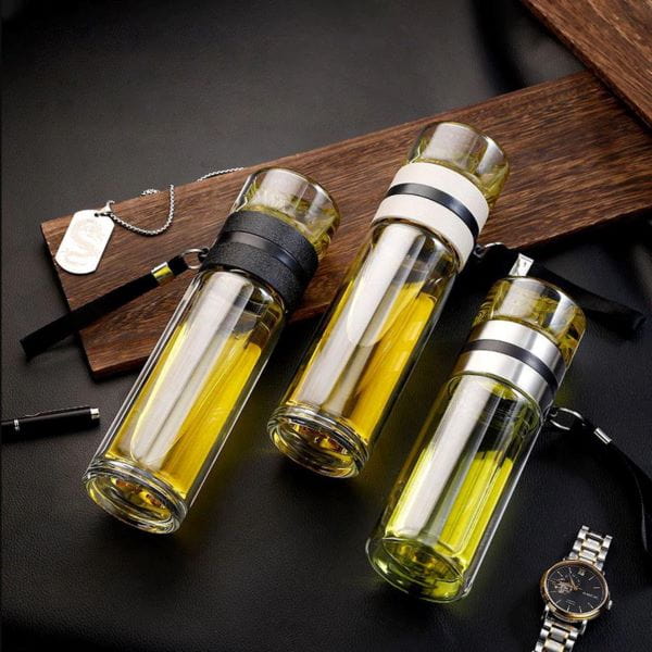 Không chỉ giữ được trà nóng, bình thủy tinh in logo 2 lớp còn không đồ mô hôi khi đựng nước lạnh. Điều này giúp bạn có thể sử dụng sản phẩm để uống nước lạnh hoặc các loại đồ uống khác một cách thoải mái và tiện lợi.