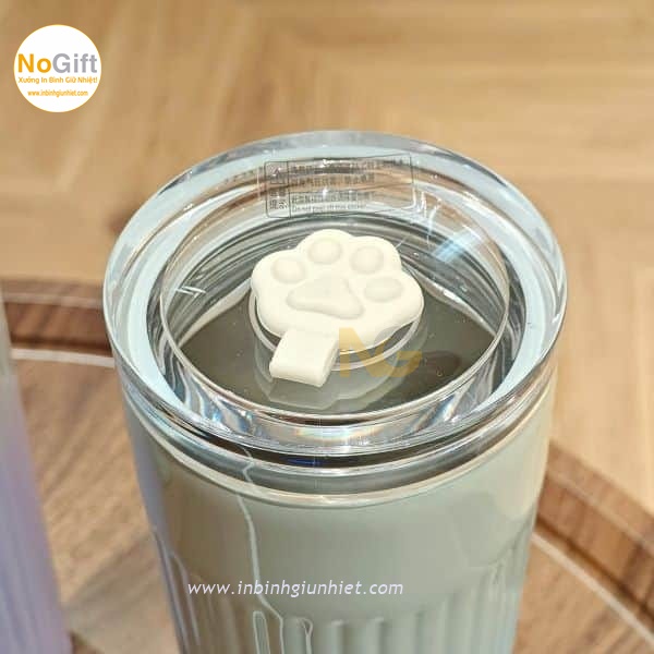 ly giữ nhiệt in logo hàn quốc màu pastel chân mèo