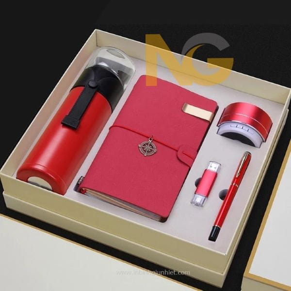 Bình giữ nhiệt quà tặng in logo doanh nghiệp sổ tay bút bi USB loa bluetooth